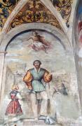 Obizio, ormai allo stremo delle forze, viene soccorso da un conoscente che lo trae in salvo sulla riva. Esausto, cade a terra, privo di conoscenza, e vive in questi momenti l'esperienza che cambierà per sempre la sua vita: una visione lo conduce all'inferno. È una visione cupa, minacciosa, densa d'odio lacerante, d'angoscia profonda, di disperazione senza fine. È una visione di tale intensità d'emozioni, cosi' vivida, precisa, reale, che scuote il cuore del futuro Santo.