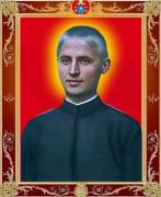 Sacerdote diocesano; anche se molti sacerdoti lasciarono l’Albania, sottomessa al regime stabilito dal presidente della Repubblica Ahmet Zogu, egli restò tra la sua gente e venne arrestato. Sottoposto a un processo farsa, fu condannato sulla base di false accuse e venne impiccato a Scutari. Nonostante avesse ricevuto minacce, non volle rinnegare la sua fede ma, sia durante il processo che in punto di morte, proclamò la fedeltà a Cristo e alla Chiesa cattolica. Papa Francesco ha riconosciuto il suo martirio in data 20 giugno 2024, per poi beatificarlo il 16 novembre successivo.