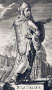 Vita e pensiero Nato a Germanicia nella provincia romana di Siria (oggi Kahramanmaraş in Turchia), studiò sotto Teodoro di Mopsuestia ad Antiochia e fu monaco del convento di Euprepios, presso Antiochia. Nel 428, nominato arcivescovo di Costantinopoli, s'impegnò a combattere le eresie ariane e novaziane, mentre ebbe un atteggiamento favorevole verso i pelagiani Giuliano di Eclano e Celestio, profughi nella città dopo la condanna del pelagianesimo. In quello stesso anno, sulla scia delle prese di posizione di Atanasio di Alessandria (295-373), si impose il problema di quale fosse il termine preciso da attribuire alla Vergine Maria: se madre di Dio (in greco Theotókos), madre di Cristo (in greco Christotokos) o madre dell'uomo figlio di Dio (in greco anthropotokos oppure Theodochos, "che riceve Dio"). Nel primo concilio di Nicea era stata affermata la consustanzialità, cioè la stessa natura, di Cristo e di Dio. Nestorio era sostenitore dell'identità di natura (ousìa) e persona (hypostasis) e della immutabilità di Dio: se Dio è immutabile, la sostanza umana e la sostanza divina non possono fondersi; se a ogni sostanza deve corrispondere una persona, allora in Cristo vi sono due persone distinte, una divina e una umana, con una attività comune. Scrive Nestorio: «Questa è l'esatta definizione del dogma: Colui che è nato ed ebbe bisogno di tempo per la crescita e fu portato nell'utero per i mesi necessari, ha natura umana, congiunta a Dio. Una cosa è dire che Colui che nacque da Maria era congiunto al Verbo, altra cosa è dire che la divinità ebbe bisogno di una nascita decorrente secondo un numero di mesi. Voglio che (...) non confondiate con Dio l'umanità assunta né che definiate puro uomo Colui che è nato né che Dio Verbo abbia perduto la propria sostanza per commistione o mescolanza (...) Colui che è nato da Maria era consustanziale a noi per l'umanità ma, congiunto a Dio, era ben lontano dalla nostra sostanza (...) Diciamo dunque nostro Signore Gesù Cristo duplice per la natura e una sola persona in quanto Figlio di Dio.» Il vescovo di Alessandria Cirillo informò papa Celestino I (422-432) con uno scritto in cui contestava Nestorio e il suo maestro Teodoro di sostenere l'assenza di unione ipostatica in Cristo, cioè la mancata unione della natura divina e umana in una sola persona. Nestorio, che sapeva di avere l'appoggio dell'imperatore e dei massimi teologi antiocheni, Andrea di Samosata e Teodoreto di Cirro, rifiutò di sottoscrivere la formula di fede che era stata approvata in un sinodo ad Alessandria e una lista di dodici anatemi. Solo l'imperatore poteva risolvere la disputa. Teodosio II convocò un concilio a Efeso nel giugno 431. I sostenitori di Cirillo, giunti il 22 giugno al concilio, prima dei sostenitori di Nestorio, condannarono Nestorio. I sostenitori di Nestorio, giunti due giorni dopo, assolsero Nestorio e scomunicarono Cirillo e i suoi sostenitori. I delegati occidentali, favorevoli a Cirillo, giunti il 10 luglio, riconfermarono la condanna di Nestorio, stabilendo che: «Il Verbo di Dio Padre è unito alla carne secondo sussistenza (hypostasin), Cristo è uno con la sua carne e lo stesso è insieme Dio e uomo; in Cristo non si devono dividere le sostanze dopo l'unione, congiungendole soltanto con la connessione che si richiama alla dignità o anche all'autorità e alla potenza, escludendo l'incontro realizzato mediante l'unità naturale (enosin physiké); né si deve dire che Cristo è un uomo che porta Dio (theophoron anthropon), ma che è veramente Dio.» L'imperatore, disorientato da tante vicende contraddittorie, sciolse il concilio senza prendere decisioni. Mentre Nestorio si ritirava nel suo antico monastero di Eupreprio, Cirillo riuscì a convincere della sua tesi molti sostenitori di Nestorio, funzionari della corte e la stessa famiglia imperiale attraverso «manovre di corruzione in grande stile»: distribuì quintali d'oro e regali preziosi come «piume di struzzo, stoffe costose, tappeti e mobili d'avorio». L'obiettivo fu così raggiunto: a Costantinopoli «tutti sono stati convinti con l'oro, e i giudici stessi sostengono che esiste una sola natura della divinità e dell'umanità», anche se in questo modo Cirillo svuotò le casse della chiesa di Alessandria, costringendola a indebitarsi per 750 chili d'oro. Il suo successore Dioscoro, nel 444 dovrà intentare causa agli eredi di Cirillo perché restituissero alla chiesa quanto Cirillo le aveva sottratto. Nestorio nel 435 fu esiliato nell'oasi di El Kharga, presso Tebe, in Egitto, dove morì intorno al 451.