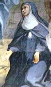 Giuliana dalla vita ha ricevuto tanto: nobiltà di casato, ricchezza di famiglia, amore sviscerato dei genitori, che avevano atteso talmente tanto la sua nascita da considerarla dono del Cielo e, pertanto, meritevole di ogni premurosa attenzione. Dalla vita ha ricevuto anche bellezza fisica, vantaggiose proposte di matrimonio, un’ottima educazione. Ed anche uno zio santo, quel tal Sant’ Alessio Falconieri, che figura tra i Sette Fondatori dei Servi di Maria. Nonostante questo insieme di doni naturali c’è chi da subito pensa che quella ragazza bella, forse allevata nella bambagia come tutti i figli nati quando i genitori sono avanti negli anni, sia fatta più per il cielo che per la terra. E non si sbaglia. Non sa cosa sia uno specchio, non si cura del proprio abbigliamento, non dimostra alcun interesse per gioielli e piaceri mondani, che pure non le mancherebbero se soltanto volesse. Rimanda al mittente le proposte di matrimonio, anche quelle serie e motivate e serie, che riceve; dimostra una straordinaria inclinazione per le pratiche di pietà e per la vocazione religiosa: insomma, una ragazza da convento. Ed infatti in convento ci va, non appena mamma, morendo, la lascia completamente sola; anzi, fonda un monastero proprio, scegliendo, com’è naturale, la linea spirituale tracciata dal santo zio Alessio, la spiritualità dei Servi di Maria, appunto, che ha già respirato in famiglia e nella quale si è addestrata con la guida di un altro santo, Filippo Benizi, vivendo in casa come una consacrata. L’esempio di Giuliana è contagioso viene e seguito da molte compagne della ricca borghesia fiorentina; dai Servi di Maria ereditano l’ampio mantello nero a causa del quale vengono subito battezzate dal popolo come “le Mantellate”. Vivono in contemplazione ed esercitano la carità, digiunano completamente il mercoledì e il venerdì di ogni settimana, il sabato si accontentano di pane ed acqua, tutti i giorni trascorrono la maggior parte del loro tempo nella preghiera e nella meditazione dei sette dolori di Maria. Il clima fiorentino in cui si trovano a vivere è pervaso da nuova vita e da antichi rancori, la città è divisa da inimicizie e discordie che ogni giorno si traducono in sanguinose vendette. Le Mantellate si assumono spontaneamente il compito di pregare e digiunare, per rasserenare gli animi, per ottenere la pace dei loro concittadini. Giuliana, in particolare, alle opere di digiuno e di preghiera, aggiunge anche il dono prezioso dei suoi dolori fisici, soprattutto quelli di stomaco, che la perseguitano per diversi anni, giungendo al punto da consumarla completamente e da non permetterle di assumere il benchè più leggero alimento. E’ per questo che quel 19 giugno 1341, a lei, morente, viene negato anche il conforto del viatico, perché si ha paura che neppure riesca a deglutire l’ostia consacrata. Gliela depongono solo su un corporale, che è stato steso sul suo petto, ma tra lo stupore di tutti l’ostia svanisce. Le sue monache credono di sciogliere l’enigma quando, appena spirata e mentre ne stanno ricomponendo il cadavere, notano in corrispondenza del cuore un marchio viola, grande appunto come l’ostia consacrata, come se questa si fosse impressa nel suo corpo: il marchio che le Mantellate ancora oggi portano impresso sul loro abito religioso, a ricordo della miracolosa ultima “comunione” della loro fondatrice. Proclamata santa da Clemente XII nel 1737, Giuliana Falconieri è festeggiata il 19 giugno ed invocata particolarmente contro i dolori di stomaco.