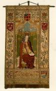 Santa Eteldreda il cui emblema è una collana, due daine e una corona, nell'arte liturgica è raffigurata come una badessa, con un pastorale, un libro, un'asta o un giglio.