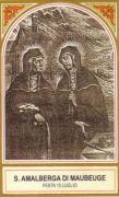 Antichissima era la tradizione di questo nome tra gli Ostrogoti, tanto che la loro dinastia era appunto quella degli ‘Amali’. Il nome è attualmente scomparso, mentre si è molto diffusa la forma abbreviata di ‘Amalia’. Di s. Amalberga ve ne sono tre, di cui due contemporanee fra loro, e si festeggiano lo stesso giorno il 10 luglio, a volte anche sotto il nome di ‘Amalia’. S. Amalberga vergine, secondo una ‘Vita’ scritta da un monaco dell’abbazia di S. Pietro di Gand, era nata nelle Ardenne, nella ‘villa Rodingi’ (Belgio), allevata a Bilsen da santa Landrada e avrebbe ricevuto il velo monacale da s. Willibrordo. Visse tra il VII e l’VIII secolo; trascorse i suoi ultimi anni nella cittadina di Tamise, dove morì nella seconda metà del secolo VIII ed a Tamise fu sepolta. Un secolo dopo le sue reliquie furono traslate nel monastero di S. Pietro di Gand (Belgio), dove furono solennemente esposte nel 1073. Di lei parla anche un diploma di Carlo il Calvo imperatore (823-877), che in data 1° aprile 870, attesta che le reliquie di s. Amalberga vergine, erano conservate in quel tempo, dai monaci di S. Pietro di Monte Blandino a Gand. La festa si celebra il 10 luglio. Dell’altra s. Amalberga detta di Maubeuge, le notizie pervenutaci e redatte da un monaco di Lobbes, sono ritenute in gran parte leggendarie e non affidabili. Nacque a Saintes (Brabante) nei Paesi Bassi, fu sposa di Witger e madre di Emeberto (che diverrà poi vescovo di Cambrai) e delle sante Reinalda e Godula. Amalberga, dopo la nascita di Godula e dopo che suo marito era morto, lasciò il mondo per abbracciare la vita religiosa a Maubeuge; ella avrebbe ricevuto il velo monastico dalle mani di s. Oberto e sarebbe morta alla fine del secolo VII. Da Maubeuge il suo corpo fu trasportato all’abbazia di Lobbes (Hainaut) attuale Belgio. La sua festa si celebra il 10 luglio.