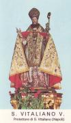 Il vescovo torna a Capua e, con le sue preghiere, fa subito scendere la pioggia, ma non si ferma. Preferisce fare vita da eremita su un’altura chiamata Montevergine (Avellino) dove costruisce una piccola chiesa dedicata a Maria, madre di Gesù. In questo stesso luogo nel XII secolo San Guglielmo da Vercelli fonderà il famoso Santuario della Madonna di Montevergine. Vitaliano muore nel suo eremo nel 699. Le sue spoglie vengono portate a Benevento e poi definitivamente collocate nella Cattedrale di Catanzaro, di cui è patrono. La città calabrese, capoluogo di Regione, è molto devota al suo santo (invocato contro le calamità naturali) anche per essere stata salvata, per sua intercessione, dal devastante terremoto del 1783 e ogni anno, il 16 luglio, lo festeggia solennemente.