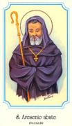 Nella Chiesa primitiva le debolezze umane venivano combattute con una disciplina assai rigorosa. In tempo di persecuzione l'ideale era rappresentato dalla morte per Cristo, col martirio. Poi, a cominciare dal IV secolo, si cercava un'altra morte: la rinuncia al mondo e la solitudine del deserto. La vita eremitica, che ha nell'egiziano S. Antonio abate l'esempio più imitato e più popolare, grazie anche alla biografia scritta da S. Atanasio, costituì per molti anni il rifugio preferito di questi simpatici anarchici dello spirito, inizialmente autonomi come i primi pionieri del West americano, poi organizzati da una Regola ascetica, che fissava tempi di digiuno e di preghiera nella vita parzialmente comunitaria, che mitigava la rigida separazione dai propri simili. Molti cristiani intraprendevano lunghi e disagiati pellegrinaggi per avere un colloquio con questi anacoreti illuminati, tra i quali vi è appunto S. Arsenio, eremita in Egitto e uno dei più celebri "padri del deserto". Il santo anacoreta però non amava rompere la rigida osservanza del silenzio neppure con un pellegrino che venisse da lontano. E quando non poteva sottrarsi a queste visite d'obbligo, le sue rare e monosillabiche risposte scoraggiavano anche il più devoto degli interlocutori, al punto che questi se ne andava quasi più sconcertato che edificato. Arsenio era nato a Roma intorno al 354 da nobile famiglia senatore. Un'antica tradizione dice che egli fu ordinato diacono dallo stesso papa Damaso. Nel 383 l'imperatore Teodosio lo volle a Costantinopoli per affidargli l'educazione dei figli Arcadio e Onorio. Vi restò undici anni, fino al 394, quando in seguito a una profonda crisi spirituale ottenne l'esonero da quell'incarico per ritirarsi nel deserto egiziano. Chiedendo a Dio una sicura via per giungere alla salvezza, una voce misteriosa gli avrebbe risposto: "Fuggi gli uomini". Il quarantenne Arsenio seguì alla lettera il consiglio: sbarcato ad Alessandria d'Egitto, si aggregò alla comunità degli anacoreti di Scete, in pieno deserto. Concedendosi pochissimo sonno, trascorreva notti intere in preghiera e meditazione: una preghiera fatta più di lacrime che di parole, poiché egli ebbe da Dio il "dono del pianto". Dal 434 al 450, che si presume sia l'anno della morte, Arsenio dovette vivere lontano dalla tranquilla Scete, invasa da una tribù libica. Morì a Troe presso Menfi. Di lui, oltre a una cronistoria e a sagge massime, riferite da Daniele di Pharan, amico di due discepoli di Arsenio, ci resta addirittura un ritratto in cui appare di bell'aspetto, maestosamente alto e asciutto.