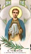 Nel giorno della solennità dell'Assunzione della Beata Vergine Maria, la Chiesa ricorda Tarcisio (o Tarsicio). Subì il martirio da adolescente mentre portava l'Eucaristia ai cristiani in carcere. Scoperto, strinse al petto il Corpo di Gesù, per non farlo cadere in mani profane, ma venne ucciso. Il Martirologio romano ne fissa la morte il 15 agosto del 257 d.C. Il corpo venne sepolto insieme a papa Stefano sulla via Appia. Nel 767 papa Paolo I fece traslare le spoglie nella basilica di san Silvestro in Capite insieme ad altri martiri. San Tarcisio acquistò di nuovo fama nell'Ottocento, in seguito alla pubblicazione del romanzo «Fabiola» del cardinale Wiseman, interessato alla figura del coraggioso e giovane santo. In molte chiese di Roma è possibile trovare quadri, statue, pale d'altare che lo raffigurano. (Avvenire)