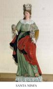 Dobbiamo purtroppo riportare notizie fantasiose che riguardano la vita di questa santa martire. Ninfa era figlia di Aureliano, prefetto di Palermo al tempo di Costantino Magno (280-337), persecutore in un primo tempo dei cristiani, fu convertita e battezzata nella sua casa dal vescovo Mamiliano, insieme ad altre trenta persone. Il padre Aureliano mentre arrestava Mamiliano e altri duecento cristiani, cercò di far recedere la figlia dalla nuova religione. Visti vani i suoi tentativi e dopo averli sottoposti a torture, li fece chiudere in carcere, ma un angelo li liberò, conducendoli in riva al mare dove trovarono una barca che li condusse, Mamiliano e Ninfa, nell’Isola del Giglio, dove rimasero in preghiera e solitudine. Desiderosi di visitare Roma, sbarcarono sotto indicazione celeste, in un luogo chiamato Bucina, abitato da molti pagani, dopo la visita alle tombe degli apostoli, Mamiliano morì e Ninfa lo fece seppellire vicino Bucina; dopo circa un anno anche Ninfa morì il 10 novembre e sepolta dove erano conservate le reliquie di altri martiri (da ciò si suppone che sia morta martire). I cristiani del luogo la invocarono perché passasse una siccità che li affliggeva. Il suo nome è citato in varie passio di altri martiri come i santi Mario, Marta e figli; inoltre è ricordata insieme ai martiri Trifone e Respicio, solo perché le sue reliquie erano venerate insieme a quelle degli altri due nella chiesa di S. Spirito in Sassia. Comunque la più antica notizia su s. Ninfa è del secolo IX, perché nella biografia del papa Leone IV (847-855), si legge che egli fece un dono alla chiesa di S. Ninfa martire, esistente nella zona Portuense. Le sue reliquie nel sec. XII, si trovavano in varie chiese di Roma e il capo nel 1592 era venerato nella chiesa di S. Maria in Monticelli a Roma. Nel 1593 il capo della santa fu trasferito a Palermo in un altare della cattedrale, consacrato nel 1598. Il culto si diffuse in altre città siciliane e un paese in provincia di Trapani ne porta addirittura il nome. Il nome deriva dal greco Nynphe e indicava le giovani donne in età da marito; inoltre le ninfe erano divinità femminili minori dei boschi, fiumi, monti, laghi.