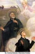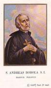 Questo santo gesuita, martire degli scismatici, nacque nel 1592 in una terra del palatinato di Sandomir (Piccola Polonia), di proprietà della nobile famiglia dei Bobòla. Essa era di intransigenti tradizioni cattoliche e beneficava largamente, oltre i poveri e le chiese, anche la Compagnia di Gesù, la quale, in Polonia, riconduceva alla Chiesa Cattolica interi villaggi di ruteni. Andrea fu perciò educato alla costante pratica della fede e al più schietto patriottismo. Alla scuola dei Gesuiti imparò a poco a poco a dominare il suo temperamento tenace ed esuberante e a crescere devoto, ubbidiente ed esemplare.