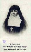 Ecco un’altra splendida figura della santità torinese, sbocciata in quel felice periodo di fine Ottocento, che donò alla Chiesa e all’umanità, tanti Santi, Beati, Venerabili e Servi di Dio, operanti nel sociale ma splendenti anche nel misticismo eroico dei chiostri. E mistica pura, fu la Serva di Dio Benigna Consolata Ferrero, suora della Visitazione a Como; nacque a Torino il 6 agosto 1885, in un’agiata e religiosissima famiglia, impegnata anche nella pubblica difesa degli interessi cattolici del tempo. Educata all’applicazione delle virtù cristiane, compì gli studi elementari e classici; frequentando la scuola di religione, conobbe il canonico venerabile Luigi Boccardo (1861-1936), luminosa figura del clero diocesano di Torino, rettore e formatore di giovani sacerdoti, nel Convitto Ecclesiastico, gloria e vanto dell’archidiocesi torinese. Don Luigi Boccardo era fratello del futuro Beato parroco di Pancalieri Giovanni Maria Boccardo (1848-1913), fondatore di un Orfanotrofio e delle suore “Povere Figlie di S. Gaetano”, che alla sua morte passarono sotto la direzione del fratello Luigi, a sua volta fondatore delle suore “Figlie di Gesù Re” non vedenti. Con la sua guida illuminata, iniziata nel 1898, la quindicenne Maria Consolata Ferrero, poté approfondire la nascente vocazione allo stato religioso, che avvertiva in sé; vocazione che fu coltivata e plasmata nei colloqui con il suo padre spirituale, il quale conoscendo la ricchezza interiore e gli aneliti di perfezione di Maria Consolata (questo il nome da laica), alla fine la indirizzò verso l’Ordine della Visitazione, fondato da san Francesco di Sales, vescovo di Ginevra (1567-1622); padre Luigi Boccardo, in seguito scriverà una monumentale biografia di Consolata Ferrero, di cui parleremo più appresso. Maria Consolata entrò ventiduenne, il 30 dicembre 1907, fra le Visitandine di Como e piena di zelo e di fervore, bruciò le tappe dell’iniziazione alla vita claustrale; il 5 novembre 1908 ci fu la vestizione prendendo il nome di Benigna Consolata; il 23 novembre 1909 emise la professione religiosa e i voti solenni il 28 novembre 1912. Nei nove anni della sua intensa vita claustrale, ebbe come guida spirituale mons. Alfonso Archi (1906-1925) vescovo di Como e impareggiabile maestro di vita consacrata. Suor Benigna, intanto raggiungeva uno stato mistico elevatissimo, ricevendo grazie straordinarie, immersa nell’Amore divino e nella confidente amicizia con Gesù, tanto che lei stessa, illuminata, si definirà “segretaria del Sacro Cuore”. Il suo “Diario” spirituale, già iniziato nel 1902, è pieno di elevate contemplazioni mistiche e di espressioni del Signore rivolte a lei; il messaggio spirituale di suor Benigna è un meraviglioso inno all’Amore di Dio e del prossimo, è la teologia di Dio Amore; l’Amore eterno che ci ha creato; l’Amore misericordioso che ci salva; l’Amore infinito che ci attirerà a sé nella beatitudine del Paradiso. Nello stesso tempo la sua è una spiritualità, intrisa di quotidianità, dell’ascesi spietata applicata nel vivere di ogni giorno, anche nel più banale degli atti, e rivela una concretezza inusuale in una monaca di clausura. Anche se spiritualmente ardite, le sue espressioni sono comunque teologicamente corrette; il suo linguaggio, come quello dei mistici di ogni tempo, per essere inteso correttamente, va interpretato nell’ottica dottrinale “dell’infanzia spirituale” di cui è piena la vita e gli scritti di suor Benigna Consolata, sull’esempio di s. Teresa del Bambino Gesù, s. Margherita Maria Alacoque, s. Faustina Kowalska, beata Elisabetta della Trinità, ecc. La giovane suora cantore dell’Amore Divino, le cui meraviglie interiori erano note solo alla superiora e al direttore spirituale, morì a soli 31 anni, il 1° settembre 1916, nel monastero di Como, dove fu sepolta nella chiesa; la tomba è costantemente visitata da fedeli, che attirati dalla fama di santità già nota in vita, implorano la sua intercessione, per i loro affanni fisici e morali. Il processo per la sua beatificazione, fu aperto il 1° dicembre 1925 e attualmente è presso la Congregazione Vaticana competente. Nel 1928 il suo primo padre spirituale il canonico Luigi Boccardo, scrisse un’imponente biografia di suor Benigna, pubblicandone il primo volume; ma il linguaggio tipicamente mistico della giovane suora della Visitazione, riportato nella sua opera, non fu facilmente assimilato da teologi e monsignori di Curia, quindi la sua pubblicazione, fu letta, criticata, giudicata e condannata, senza un minimo di autodifesa, gli fu imposto da Roma di non stampare il secondo volume della Biografia; ciò provocò un grande dolore al canonico Boccardo, che umilmente ubbidì; in seguito diede alla stampa tre opuscoli, scritti in difesa della spiritualità mistica di suor Benigna. Inoltre fu uno dei più zelanti promotori della Causa di Beatificazione e un prezioso teste al Processo Diocesano che si tenne a Torino.
