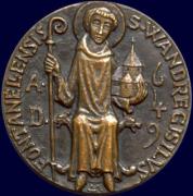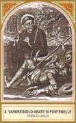 San Vandregisilo (in francese Wandrille) nacque nei pressi di Verdun, nella Francia orientale, verso l’inizio del VII secolo. Fu ufficiale a corte e si sposò, ma nel 628 di comune accordo con la moglie si separarono per intraprendere la vita religiosa. Il marito divenne monaco a Montfaucon sotto la guida di San Balderico, ma ben presto si ritirò a vivere in assoluta solitudine a Saint-Ursitz fra le montagne del Giura. Pare che abbia subito l’influenza delle pratiche ascetiche dei monaci irlandesi, in particolare San Colombano ed il suo discepolo Sant’Ursicino, che aveva operato nella zona fondandovi vari monasteri. Vandregisilo divenne celebre per l’austerità che contraddistingueva la sua vita. Trascorse un periodo di tempo al monastero di San Colombano a Bobbio nel nord Italia, poi si trasferì all’abbazia di Romani-Moutier, nella subregione savoiarda della Tarantasia, sulle rive del torrente Isère. Qui trascorse all’incirca dieci anni e ricevette l’ordinazione dall’arcivescovo di Rouen Sant’Audoeno. Sfruttò questa varietà di esperienze per fondare la nuova abbazia di Fontanelle in Normandia, la cui chiesa fu aperta al culto nel 657. Sotto la guida del fondatore, i monaci seguirono la “regola” di San Colombano, gettando le basi per la futura crescita dell’abbazia, che infatti divenne uno dei monasteri più apprezzati in Francia, importante centro di erudizione ed evangelizzazione. Prima di morire, nel luglio 668 (o secondo altre fonti nel 657), rassicurò i suoi monaci circa la prosperità del monastero qualora essi fossero rimasti fedeli alle tradizioni che egli aveva dato loro: “Il Signore sarà sempre tra voi e sarà il vostro conforto ed aiuto in ogni vostra necessità”. Onde escludere un’eventuale profanazione da parte dei vichinghi, le reliquie del santo furono spartite fra diverse chiese, tra le quali l’abbazia di Mont-Blandin a Grand. Da qui la celebrazione della sua festa fu estesa all’Inghilterra, nel periodo anteriore alla conquista da parte di Guglielmo nel 1066.
