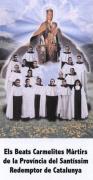Nel 1936 diciassette religiosi spagnoli appartenenti a varie comunità Carmelitane diedero la loro vita in difesa ed in testimonianza della loro fede cristiana e consacrazione a Gesù Cristo. Il 28 luglio, alla stazione ferroviaria di Tarrega, dodici religiosi dalla comunità di Tarrega furono arrestati, deportati a Clots dels Aubens di Cervera ed uccisi all'alba del 29 luglio mentre pregavano a Gesù e alla Madre del Carmelo. Questi religiosi furono: P. Ángel Maria Prat Hostench, priore, P. Eliseo Maria Maneus Besalduch, maestro dei novizi, P. Anastasio Maria Dorca Coramina, dalla comunità di Olot (Girona) che stava predicando a Tarrega per la festa della Nostra Signora del Monte Carmelo, P. Eduardo Maria Serrano Buj, un professore. C'erano anche gli studenti di filosofia: Frs. Pedro Maria Ferrer Marin, Andrés Maria Solé Rovina, Juan Maria Puigmitjà Rubió, Miguel Maria Soler Sala, Pedro-Tomás MariaPrat Colledecarrara ed il fratello laico Eliseo Maria Fontdecaba Quiroga, così come i novizi Frs. Elías Maria Garre Egea e José Maria Escoto Ruíz. Durante la notte del 13 agosto, a Vic, Barcelona, Sr. Maria di San Giuseppe Badía Flaquer, una monaca dal convento di Vic, fu arrestata ed uccisa la stessa notte difendendo la sua castità e testimoniando la sua consacrazione a Cristo. Il 3 ottobre fu ucciso Fr. Eufrosino Maria Raga Nadal, un suddiacono e membro della comunità di Olot. Fr. Ludovico Maria Ayet Canós ed Angelo Maria Presta Batlle, Carmelitani dalla comunità di Terrassa (Barcelona) furono arresti il 21 luglio e messi in prigione a Modelo, in Barcelona. Il 13 agosto furono uccisi nel cimitero di Terrassa. Il priore della comunità di Olot, P. Fernando Maria Llobera Puigsech, fu ucciso nelle fosse di Santa Elena di Montjuic (Barcelona) semplicemente perché era un religioso. Il processo per la beatificazione di questo gruppo iniziò nella diocesi di Barcelona nel settembre 1959. Il 26 giugno 2006, il Santo Padre, Benedetto XVI, ha firmato il decreto per la loro beatificazione. Il 28 ottobre 2007 sono stati beatificati tra un gruppo di 498 martiri spagnoli del 20° secolo.