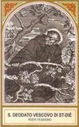 Nato da famiglia nobile, Deodato divenne vescovo di Nevers verso la metà del settimo secolo. Perseguitato, si stabilì con qualche compagno in un’isola presso Strasburgo. Desideroso di vita solitaria, fondò un monastero chiamato Jointures, con l’osservanza della regola di S. Colombano. Alla sua morte, avvenuta verso il 679, sia il monastero di Jointures, sia il borgo che vi sorse accanto presero il suo nome. Fu molto onorato prima della Rivoluzione francese. L’Ordine Benedettino lo festeggia il 19 giugno.