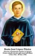 José nacque il 2 febbraio 1912 a Jatibonico (Cuba), una città cubana di nuova fondazione, abitata da molti emigrati. Anche i genitori del beato, infatti, erano emigrati spagnoli, provenienti dalla Galizia. Il padre, Emilio Lopez Vilelo, e la madre, Lucinda Piteira Romero, si erano trasferiti prima a Santiago de Cuba nel 1907 e poi nel nuovo paese nel 1909, qui poterono anche acquistare una piccola proprietà, dove vissero e dove nacque il nostro beato, quinto di dieci figli. Venne battezzato nella parrocchia di Arroyo Blanco l’11 novembre 1913. Non si conoscono particolari dell’infanzia di José, ma dovette certamente essere un bambino molto educato e attento, tanto che i genitori, benché non fossero particolarmente ricchi, investirono nella sua istruzione. Nel 1917 la famiglia tornò in Spagna e si stabilì a Partovia, paese di Lucinda. A 12 anni José andò a studiare, come interno, nel Monastero Benedettino di Santa Maria de San Clodio a Leiro, dove rimase fino ai 16 anni, compiendo studi umanistici, e terminando lì l’Istruzione Secondaria. Forse grazie alla testimonianza di due frati agostiniani, provenienti da paesi vicini a Partovia, conobbe l’Ordine di Sant’Agostino, e si sentì chiamato a quella speciale vocazione, tanto che, terminati gli studi nel 1916 entrò nel noviziato del Convento agostiniano di Nuestra Señora del Buen Consejo de Leganés (Madrid). I compagni lo descrissero come un ragazzo “gentile, entusiasta attento”, “un religioso esemplare”, che manifestò “fin dall’inizio una vocazione molto determinata, alla quale rispose con una vita di pietà molto intensa”. Il 10 agosto 1929 emise i voti semplici e iniziò lo studio della filosofia, che completò nel 1933 presso il Reale Monastero di San Lorenzo all’Escorial, dove studiò anche la teologia. Qui professò i voti solenni il 16 luglio 1934, e fu ordinato diacono dal vescovo Francisco Gomez de Santiago, l’8 settembre 1935. Il 18 luglio 1936 fu ordinato che tutti i frati dell’Escorial fossero tenuti prigionieri nel monastero stesso, fra di essi c’era anche fra’ José, che visse con serenità quel momento difficile per la sua comunità. Il 6 agosto tutti i 107 frati furono tradotti a Madrid, interrogati e incarcerati presso il Collegio di Sant’Anton degli Scolopi, trasformato in prigione. La famiglia, avuta notizia dell’incarceramento, si rivolse al consolato cubano, facendo leva sul fatto che José era un cittadino di quella repubblica, ma fu lo stesso fra’ José a rifiutare questo trattamento di favore, dicendo ai suoi confratelli: “Voi che siete stati i miei educatori, maestri, superiori siete tutti qui, cosa mai farò io? Preferisco seguire la sorte di tutti e lasciare che si faccia come vuole Dio”. Per quattro mesi, insieme ai confratelli, fu sottoposto a privazioni e sofferenze, che affrontò sempre con incrollabile fede e speranza. Dopo un sommario processo fu condannato e inserito in una cosiddetta “saca de la muerte”. Partì con il terzo gruppo di martiri, che comprendeva 50 frati, alla volta di Paracuellos de Jarama, nella periferia di Madrid, dove fu spogliato di tutto, legato e, infine, ucciso, mentre perdonava i suoi carnefici, gridando: “Viva Cristo Re!”, era il 30 novembre 1936. Il suo coraggio fu motivo di ammirazione da parte degli stessi persecutori. Poco tempo dopo si cominciarono a raccogliere le testimonianze e i documenti su tutti i martiri delle quattro case agostiniane della provincia di Madrid, e, dal 1950 al 1957 si svolse la fase diocesana del processo di beatificazione presso l’Archidiocesi di Madrid-Alcalà, a conclusione della quale si inviò a Roma il fascicolo di José contenuto nel più ampio testo inerente il martirio di Avelino Rodriguez e altri 64 frati agostiniani. Il processo ebbe un lungo periodo di stasi, fino alla riapertura di tutti i processi per martirio pendenti sotto il pontificato di san Giovanni Paolo II. Nel 1990 le 5 cause inerenti i martiri agostiniani vennero unificate in un unico fascicolo sotto il nome di Avelino Rodrigueze e 97 compagni martiri agostiniani e 6 sacerdoti secolari. La Positio del nuovo fascicolo, con testimonianze e documenti inediti fu consegnata nel 1996. Finalmente, il 1 giugno 2007, Benedetto XVI firmò il decreto sul martirio, autorizzando la beatificazione che si è celebrata il 28 ottobre dello stesso anno, in Piazza San Pietro. In quell’occasione sono stati beatificati 498 martiri della persecuzione religiosa in Spagna. Fra’ José è il primo beato nativo di Cuba e il suo martirio appare significativo come “inaugurazione” della santità cubana, perché il martire imita Cristo nel suo volto più vero e più autentico, quello della Croce. La storia di José poteva essere quella di mille e mille frati di ogni epoca e nazione, una vocazione seguita con perseveranza, una vita semplice, fatta di una normale quotidianità, vissuta alla luce della Parola del Signore. Nulla di straordinario se non quella eccezionalità che solo una vera fede in Cristo può dare a una vita come tante vite. Un’eccezionalità che, nel caso di José ha raggiunto il grado eroico del supremo sacrificio della vita, del martirio affrontato senza paura, senza esitazione. Egli muore proclamando “Viva Cristo Re!”, ma prima di gridarlo con le parole egli lo ha dimostrato con la vita, perché veramente Cristo Re è stato vivo in lui, e lui ora vive nella gloria di Cristo Re.