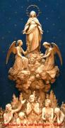 Ai suoi piedi, due angeli genuflessi; uno presenta a Maria la Croce, supplicandola che, per virtù del sacrificio di Gesù sulla Croce, ottenga il perdono e la liberazione delle anime purganti; l’altro angelo tiene in mano un calice, nell’atto di versare sulle anime sottostanti il Sangue preziosissimo di Cristo, fonte di salvezza. In basso è simboleggiato il Purgatorio, con varie persone tra le fiamme, in atteggiamento sofferente.