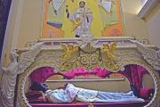 Fu sepolto nella sua chiesa parrocchiale, nel 1999 si procedette alla ricognizione canonica e i resti mortali furono posti in un nuovo sarcofago.