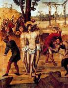 Gallerie dell’Accademia a Venezia acquisì nel 1812 l’opera di Vittore Carpaccio dalla chiesa di Sant’Antonio di Castello, a seguito delle soppressioni napoleoniche. Firmata e datata al 1515, la pala, commissionata da Ettore Ottobon, era originariamente collocata in un altare marmoreo sul lato destro della chiesa citata, oggi distrutta. Il soggetto, inedito prima di allora nell’arte italiana, narra la vicenda dei diecimila martiri: il dipinto, che comprende i vari episodi della vicenda distribuendoli in profondità senza uno specifico focus compositivo, riprende l’impostazione dei cicli narrativi modulandola per il tipo della pala d’altare. Il risultato, infatti, è sicuramente distante dalle serene produzioni di Giovanni Bellini. Carpaccio sceglie, inoltre, di riferirsi ad artisti di diversa tradizione figurativa quali Michelangelo e Dürer.