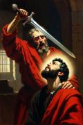 Narsete, pallido e tremante, con la mente turbata e fuori di sé per la confusione, né rifletteva sull’indegnità del fatto né si muoveva a misericordia. Alzò più volte la spada e vibrò più colpi ma sempre con mano tremante, così che fece soffrire a Bademo un più lento e doloroso martirio e, nello stesso tempo, espose se stesso alle beffe dei presenti che ammiravano la fortezza del martire e la vergognosa codardia del misero apostata. Solo alla fine, dopo molte ferite gli riuscì di recidere la testa a Bademo.